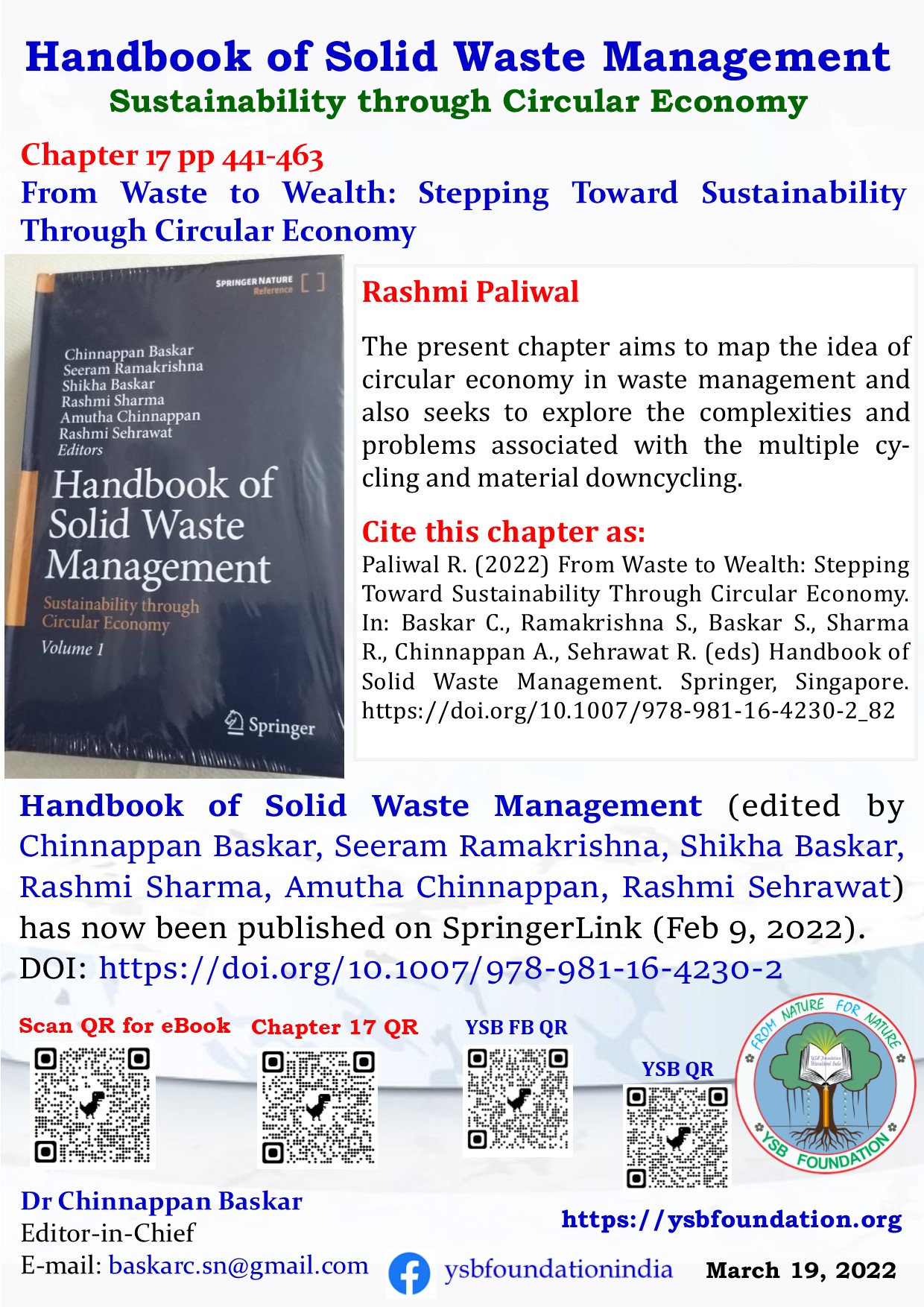 Cite this chapter as: Paliwal R. (2022) From Waste to Wealth: Stepping Toward Sustainability Through Circular Economy. In: Baskar C., Ramakrishna S., Baskar S., Sharma R., Chinnappan A., Sehrawat R. (eds) Handbook of Solid Waste Management. Springer, Singapore. https://doi.org/10.1007/978-981-16-4230-2_82