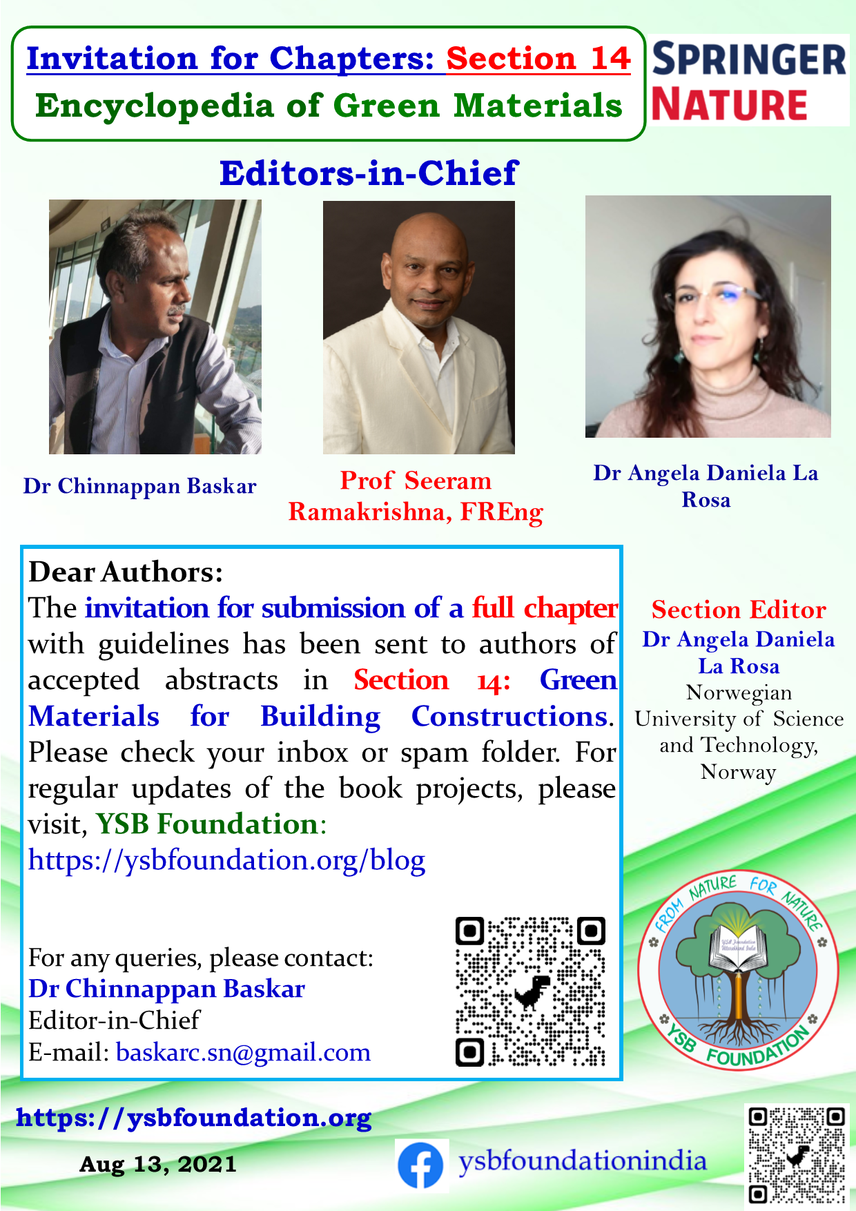 The invitation for submission of a full chapter has been sent to authors of accepted abstracts in Section 14: Green Materials for Building Constructions of the Encyclopedia of Green Materials. Please check your inbox or spam folder.