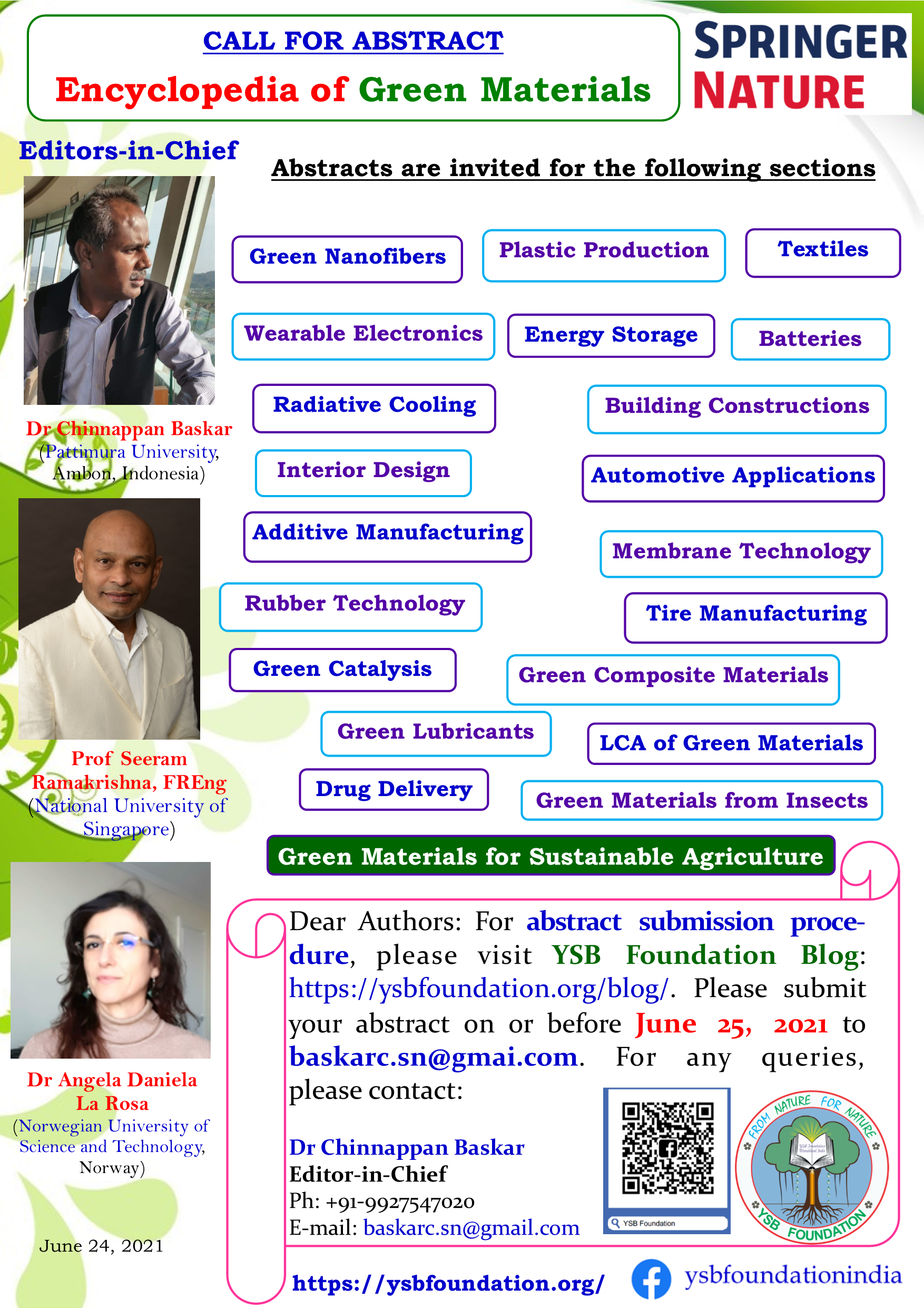 For more sections, please click the following link: https://ysbfoundation.org/call-for-abstract-encyclopedia-of-green-materials-sections-and-abstract-submission-procedure/